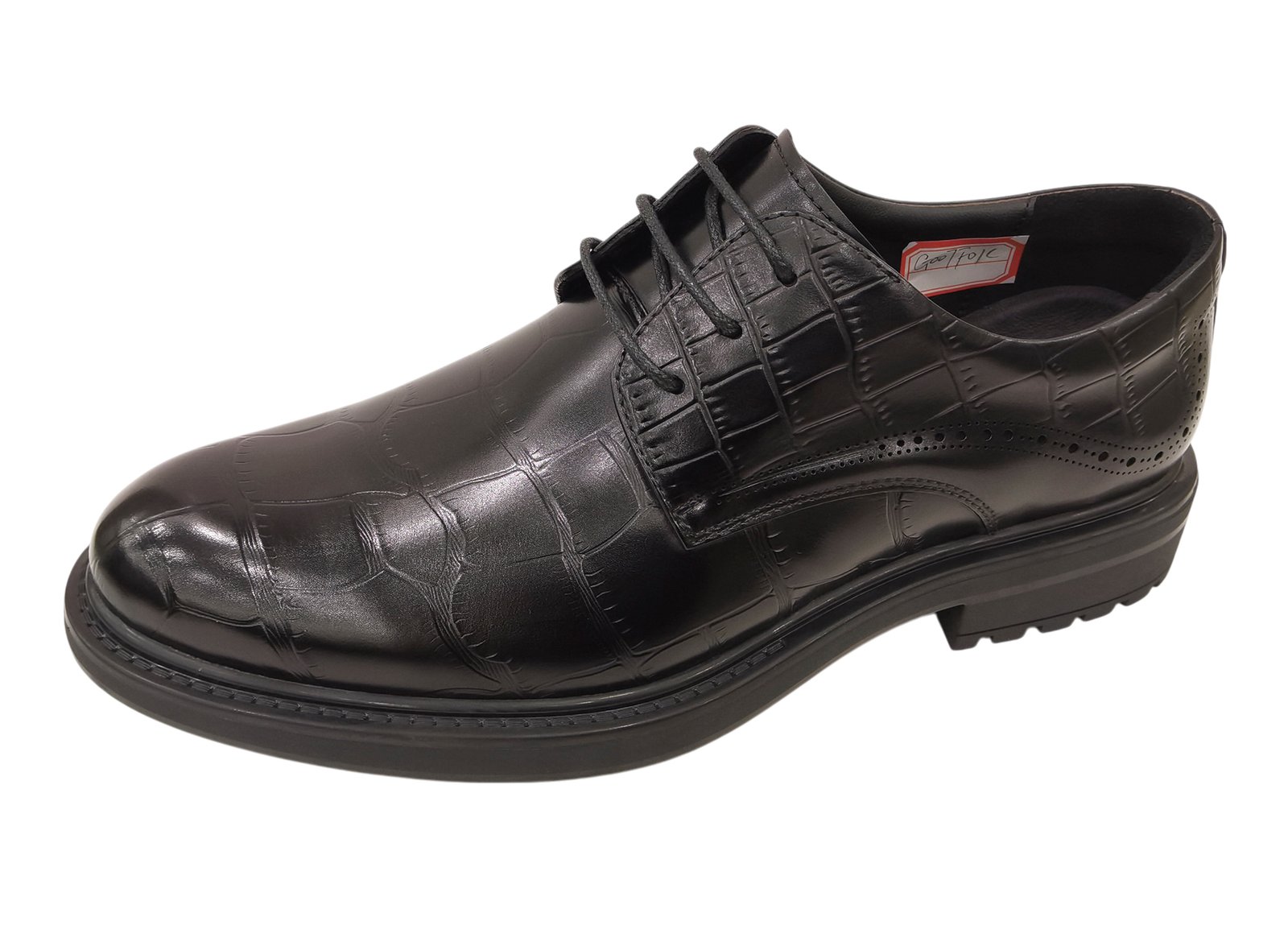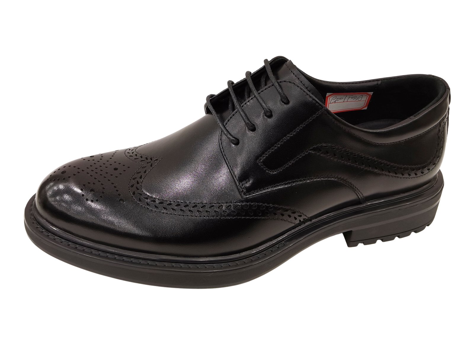 Elevate your formal footwear game by means of these High Sole Business Formal Leather Shoes. They are deliberately designed for the contemporary professional and they peculiarly offer a stylish blend of sophistication and toughness. Made out of superior black calf leather, they boast the traditional brogue ornamentation and also have a strong high sole to support comfort and grip. Whether you are on the way to a business meeting or a formal get-together, these shoes will undoubtedly give you the polished and confident appearance you need.